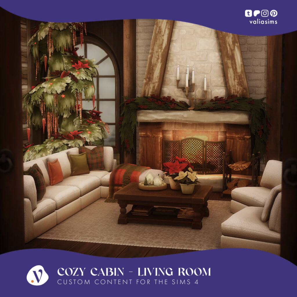 for base game compatible trees, gifts, fireplaces and classic decor. - Cozy Christmas living room: