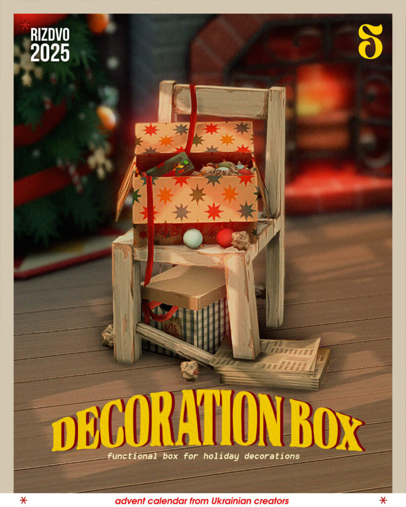 For something special, there is a Ukrainian community collab known as the RIZDVO’25 Advent Calendar. It brings together creators like vellesa, borsch&smetania, sonechko, Sunivaa, Wistful Castle and many more in one daily advent event. This calendar isn’t limited to build and buy objects, it mixes clothing items, small builds, households, decor, overrides and unique themed pieces. You can treat it as a long term collection for cottage worlds, fairy-tale inspired builds and warm winter storytelling saves.