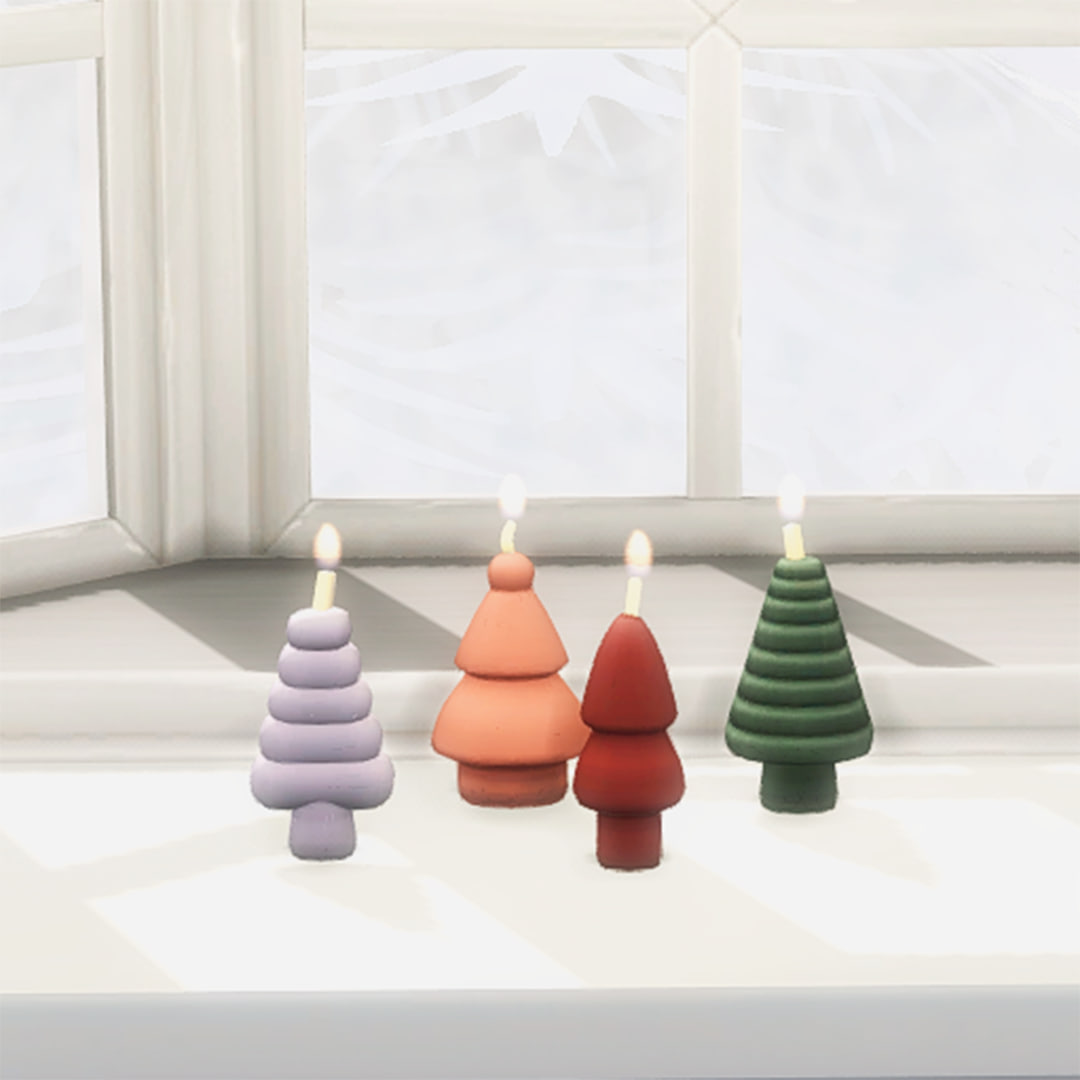 adds four adorable tree shaped candles with 24 different swatches ranging from classic festive to bright and fun. These are perfect for small tables, window sills and bedroom shelves.